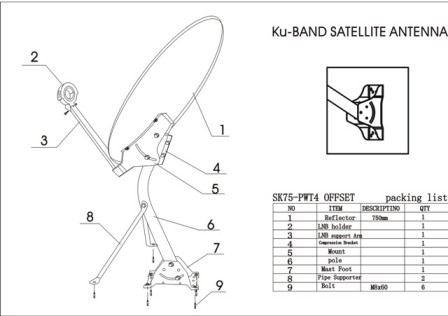 SkyTech 75cm KU Band Offset Dish Antenna.